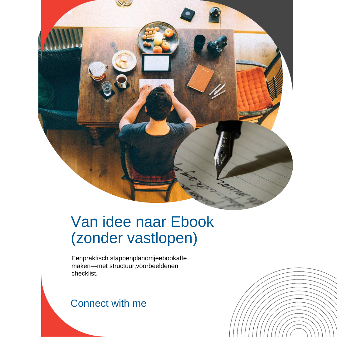 Sommige ondernemers willen eerst zelf begrijpen hoe het ebook-proces werkt, maar lopen vast op structuur of afronden.Daarom heb ik een praktisch ebook gemaakt waarin ik stap voor stap uitleg hoe je van idee naar een afgerond ebook gaat.